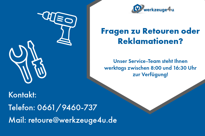 Bestellen Sie noch heute bequem online bei Werkzeuge4u.de. Profitieren Sie von unseren günstigen Preisen, schnellen Lieferzeiten und dem hervorragenden Kundenservice!